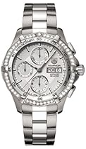 Find TAG Heuer Men's CAF2015.BA0815 Aquaracer Diamond Accented Automatic Chronograph Watch.  Stainless  Steel  Case  &  Bracelet,  Unidirectional  Rotating  Aluminum  Bezel  with  Chronograph  Scale,  47  Diamonds  Set  on  the  Bezel  at  0.55  Cts,  Silver  Dial,  Luminous  Hands  and  Markers,  Chronograph  Feature  (hours,  minutes,  seconds),  Day,  Date  Display  at  the  3  o'clock  Position,  Swiss  Quartz  Movement,  Scratch  Resistant  Sapphire  Crystal,  Water  Resistant  300  meters/  1000FT      Scratch-resistant  Sapphire  Crystal  47  Diamonds  Accented  Stainless  Steel  Bezel;  Silver  Dial;  Chronograph  functions  with  12-hour,  30-minute,  and  60-second  Subdials;