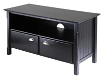 Winsome Wood 20244  most  décor  and  at  44.5"  long  can  accommodate  large  TV's.  From  Winsome  Wood's  new  Timber  collection:  a  wood  oversized  TV  cabinet  with  storage  shelf  for  DVD  plaayer  and  accessories  and  2  door  enclosed  storage  space  with  brushed  aluminum  pulls    Made  of  solid  and  composite  woods  with  Matte  Black  finish  and  brushed-steel  hardware  Design  details  include  beveled  top,  beadboard-style  sides,  and  carved  legs ...